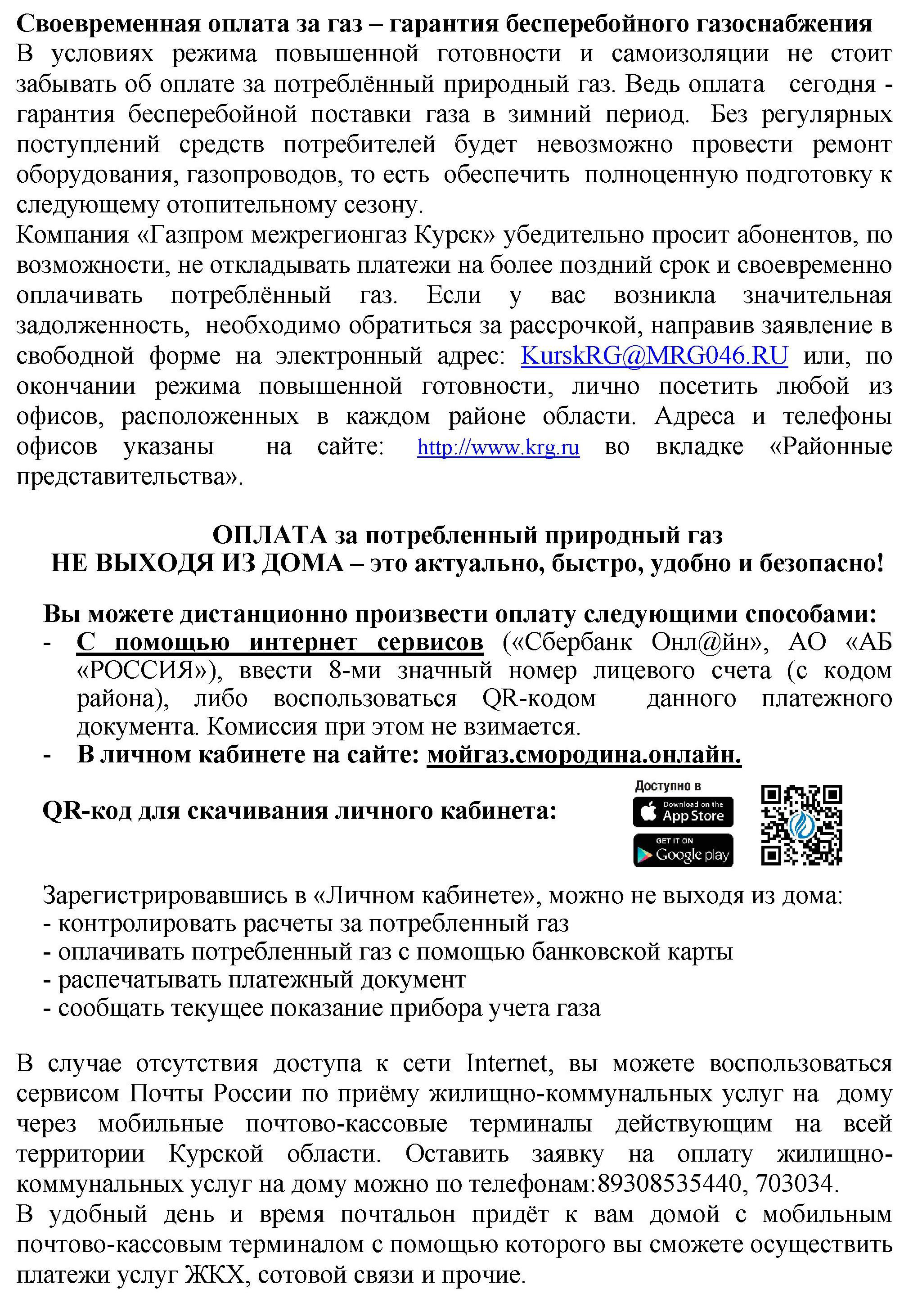 Об оплате за природный газ в условиях COVID-19